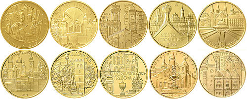 Rok 2021-2025 Sada všech 10 Městských památkových rezervací Ryzost 999,9, hmotnost 10x 1/2 Oz = 155,5g |