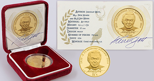 Mimořádná nabídka! Karel Gott 75. narozeniny emise 2014 nízká, vzácná čísla ražby: 061 (ENG), 034 (RUS) Ryzost 999,9, hmotnost 1 Oz = 31,1g |