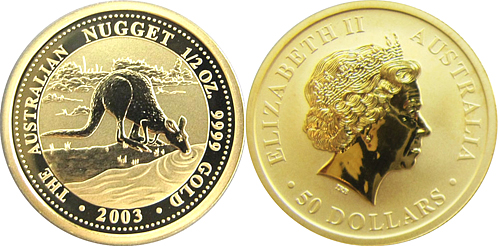 Kangaroo 2003 Ryzost 999,9, hmotnost 1/2 Oz = 15,55g |
